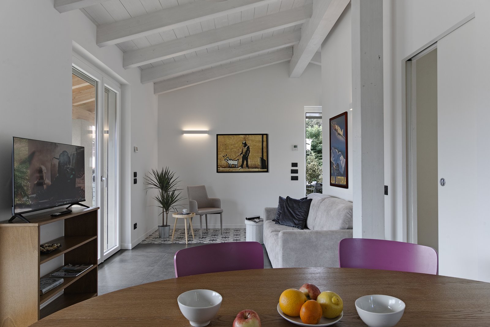 Ogni appartamento è arredato con eleganti e moderne componenti, progettato per offrire il massimo comfort. In dotazione troverete una connessione Wi-Fi gratuita, TV a schermo piatto, prodotti per la toilette e una cucina completa. Rigeneranti le docce a effetto pioggia nella spaziosa cabina, così come i letti confortevoli, ideali per rilassarsi dopo una giornata intensa. Da ogni appartamento si accede a una splendida terrazza privata, perfetta per godersi momenti di relax all’aria aperta. La terrazza offre una vista mozzafiato su un rigoglioso frutteto che colora l’intero perimetro della tenuta, regalando profumi e panorami unici.