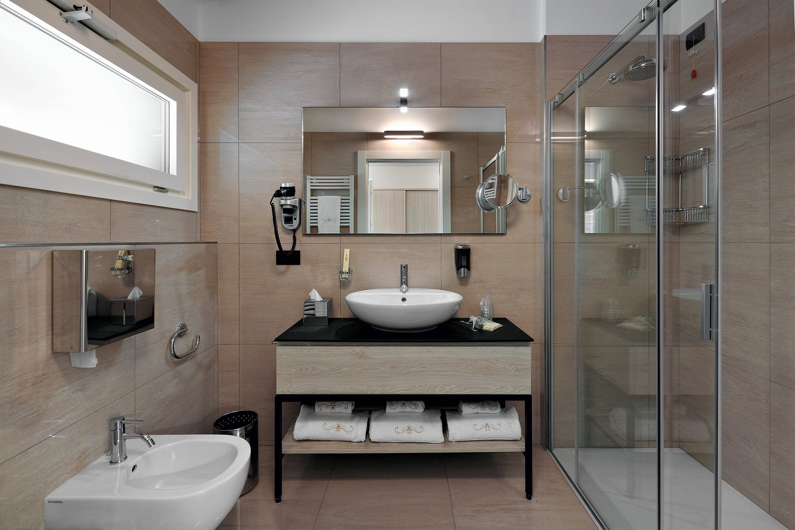 Each room is furnished with elegant and modern components. Equipped with free Wi-Fi, flat-screen TV, toiletries, bathrobes and slippers. Regenerating the rain effect showers on the large platform, as well as the comfortable beds, where you can rest well before looking out over a fragrant orchard that colors the entire perimeter of the estate